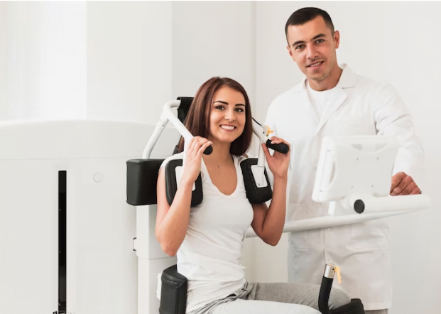 كما أن هناك العديد من فرص العمل في مجال العلاج الطبيعي وإعادة التأهيل مثل: طبيب الطب الرياضي، والمعالج الفيزيائي، والمدرب الرياضي، وأخصائي الفيزيولوجيا، وعلم النفس الرياضي حيث يعمل هؤلاء المحترفون في أماكن مختلفة بما في ذلك الفرق الرياضية ومراكز اللياقة البدنية والمستشفيات ومراكز إعادة التأهيل والمؤسسات البحثية.